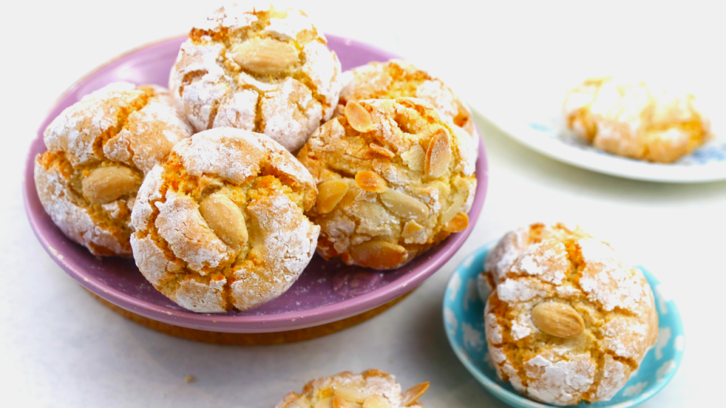 - Whisk the egg whites to a stiff peak and then mix in the ground almonds, orange/lemon zest and sugar until you are left with a uniform dough.